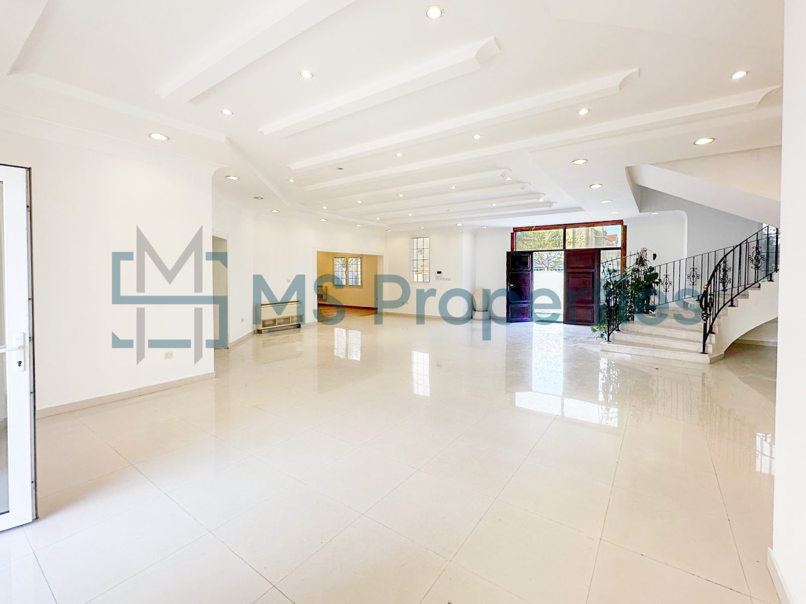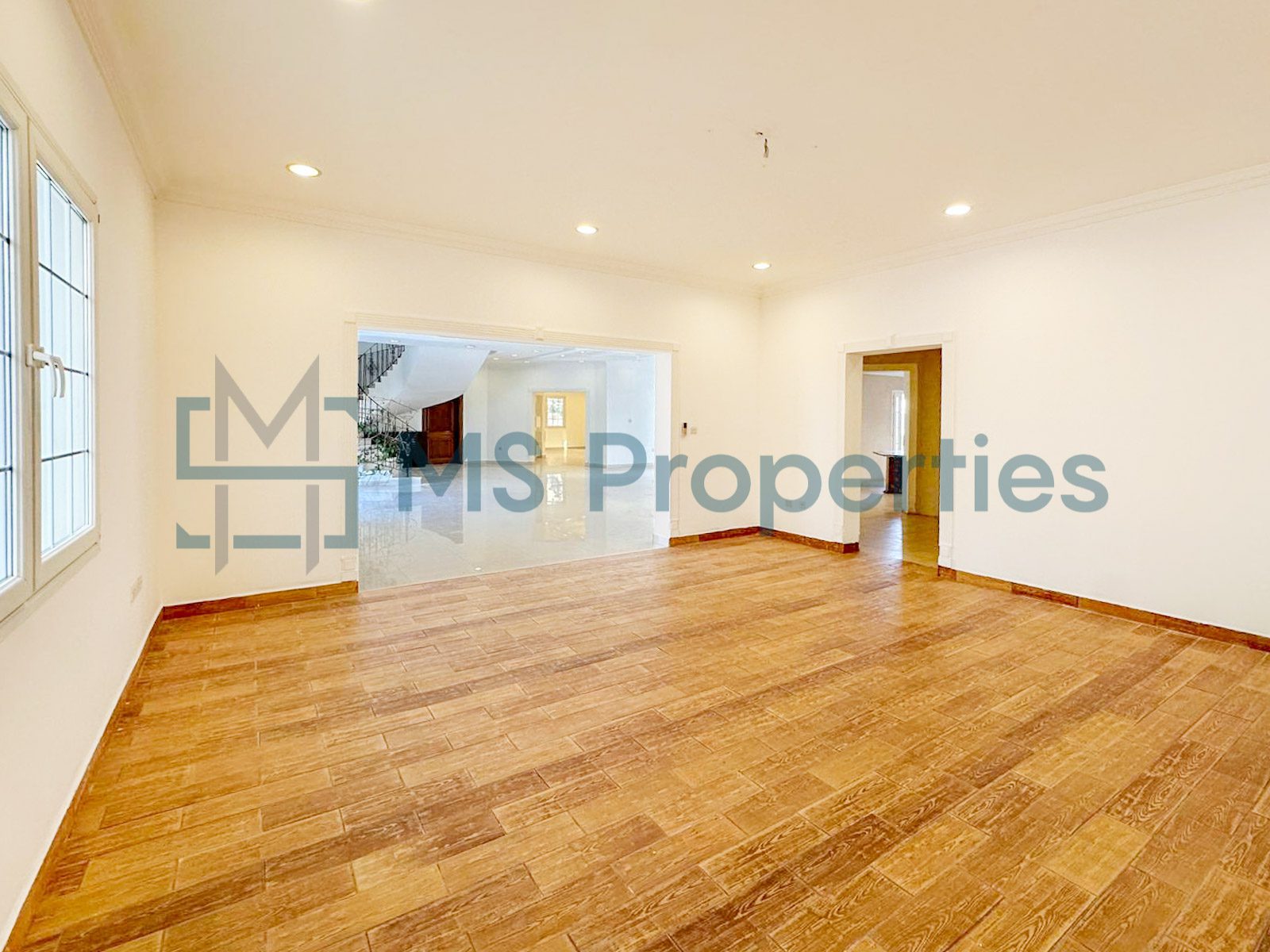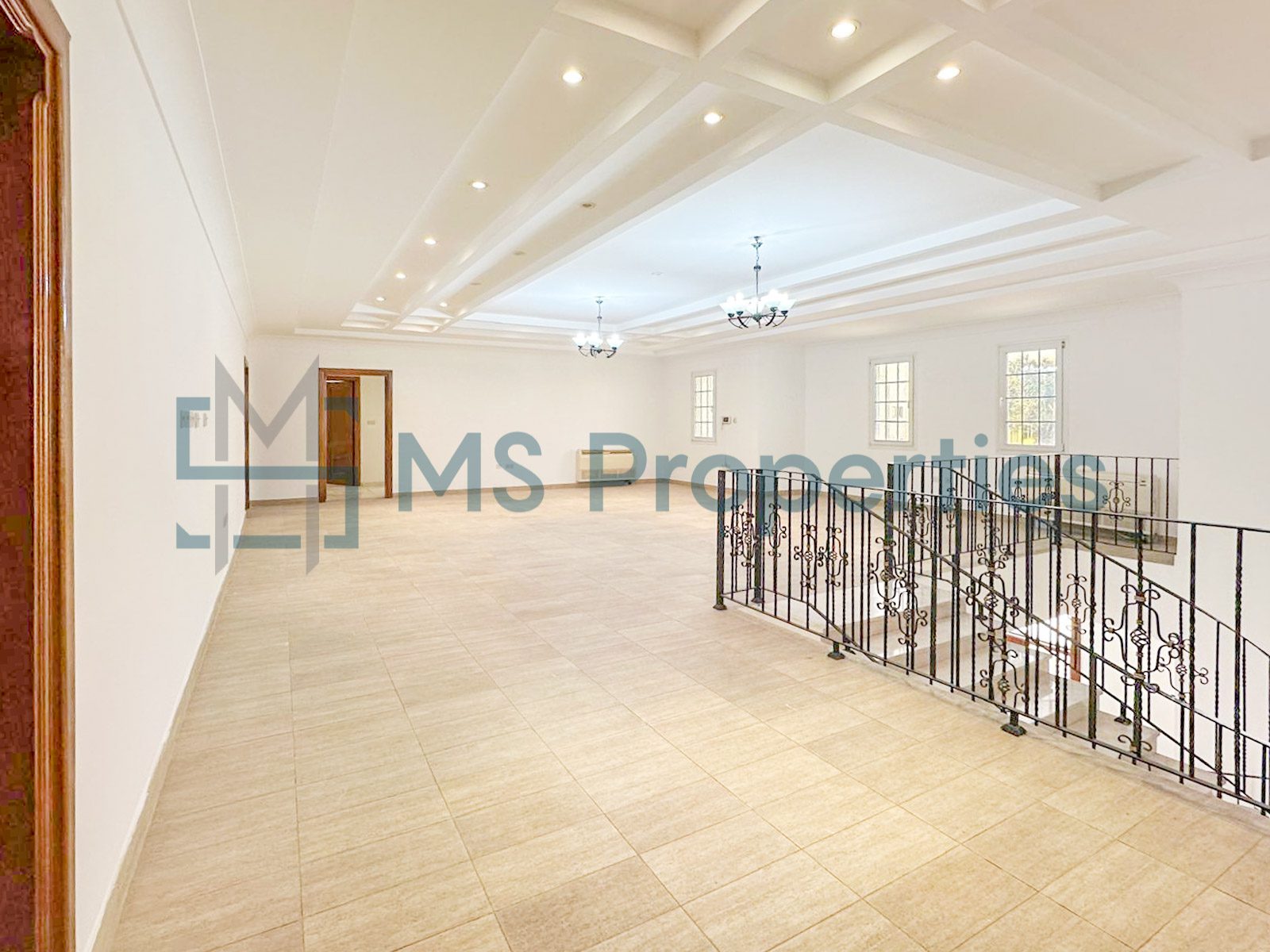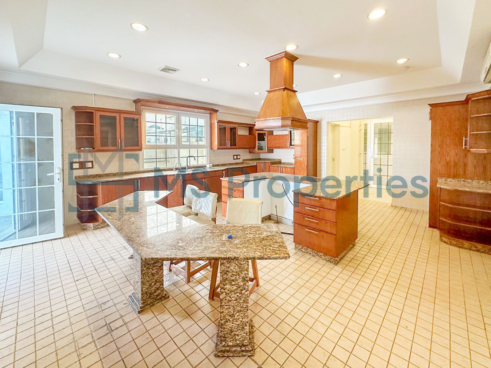 The villa consists of two bright and huge living/dining areas with panoramic windows, a spacious closed kitchen with marble countertops and modern appliances, seven bedrooms, maids room, plenty of toilets/bathroom, and cabinets.