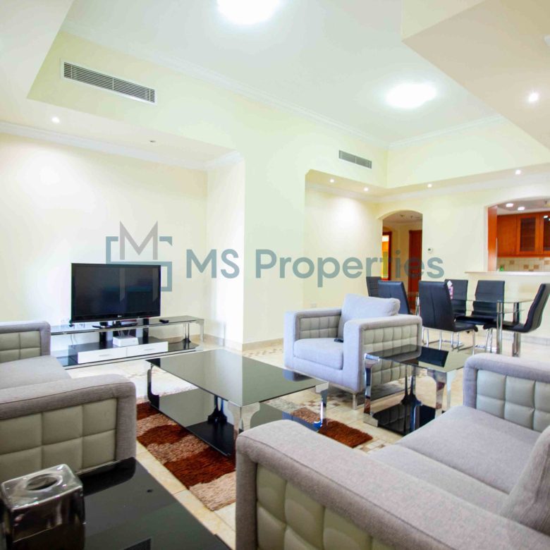 Semi-Furnished 1-Bedroom Apartment in Porto Arabia, The Pearl, Qatar with Title Deed
